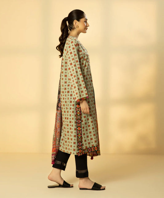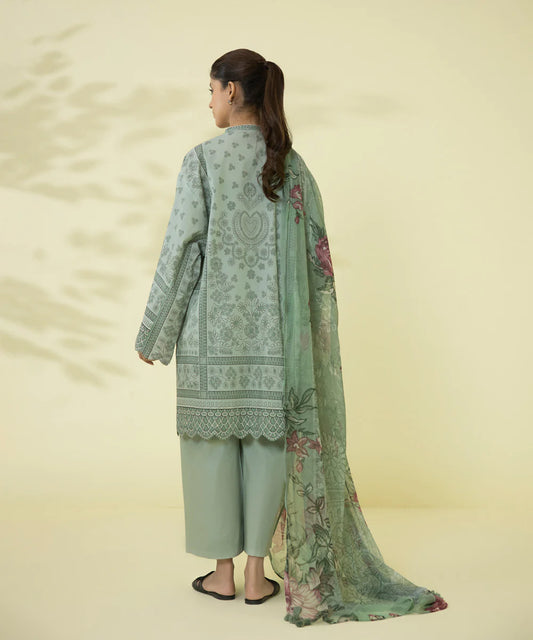 Sage Green Embroidered Lawn Shirt with Dupatta