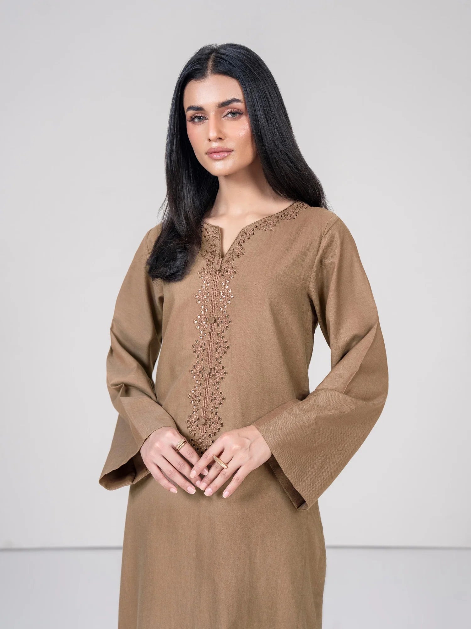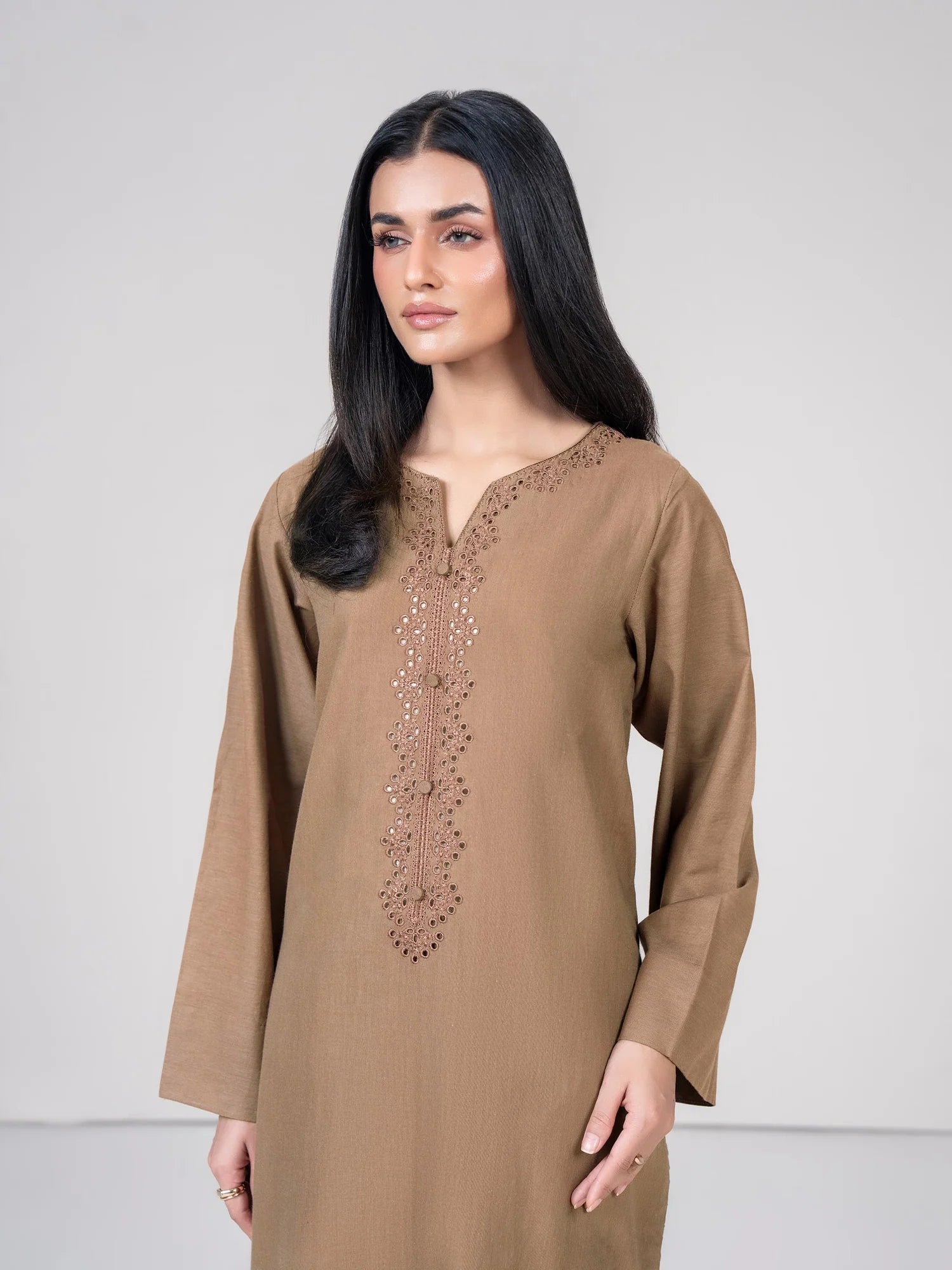 - Solid shirt with embroidered neckline